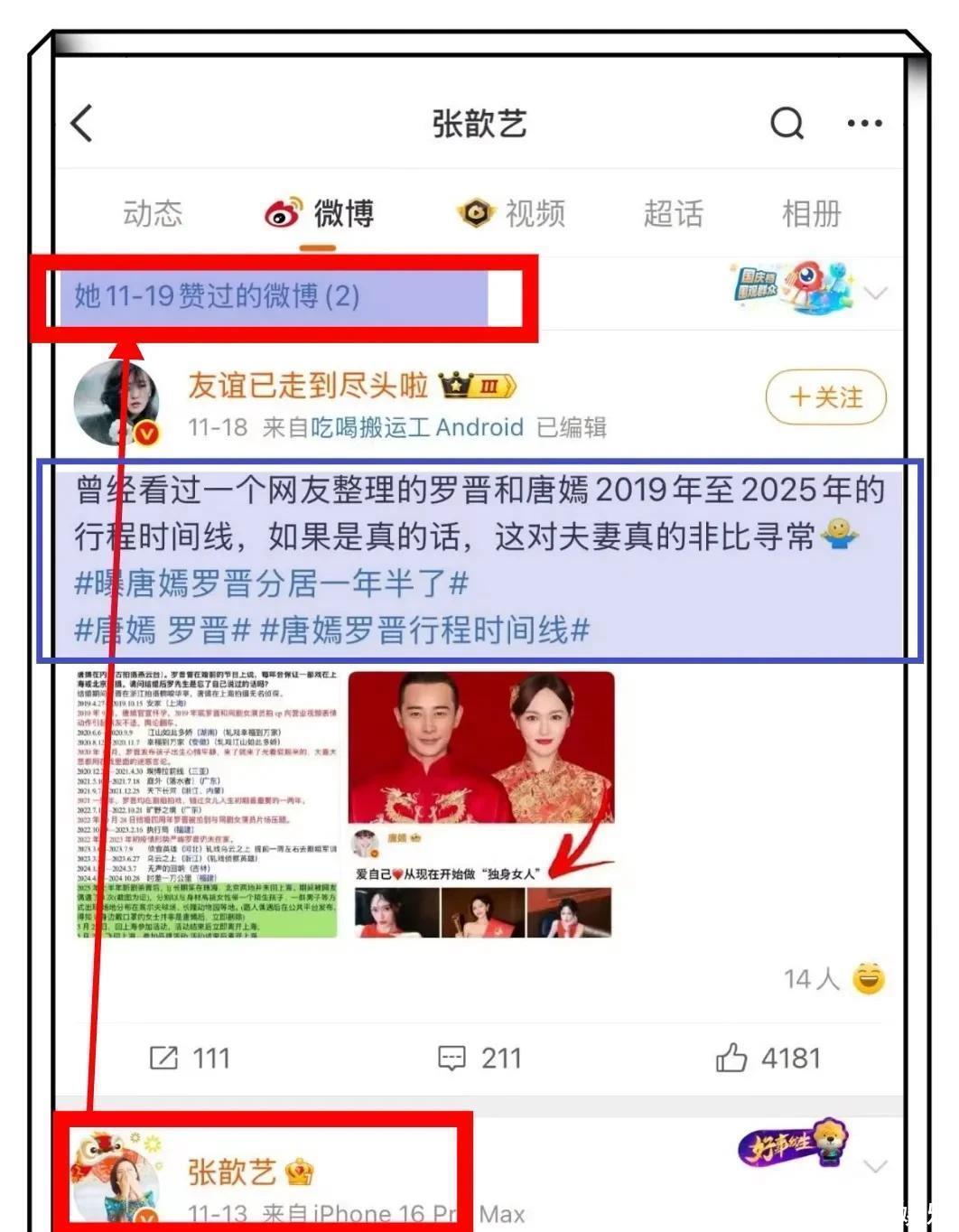 没想到今天有网友发现张歆艺点赞了唐嫣罗晋分居离婚的文章,一时间引发全网热议不断!