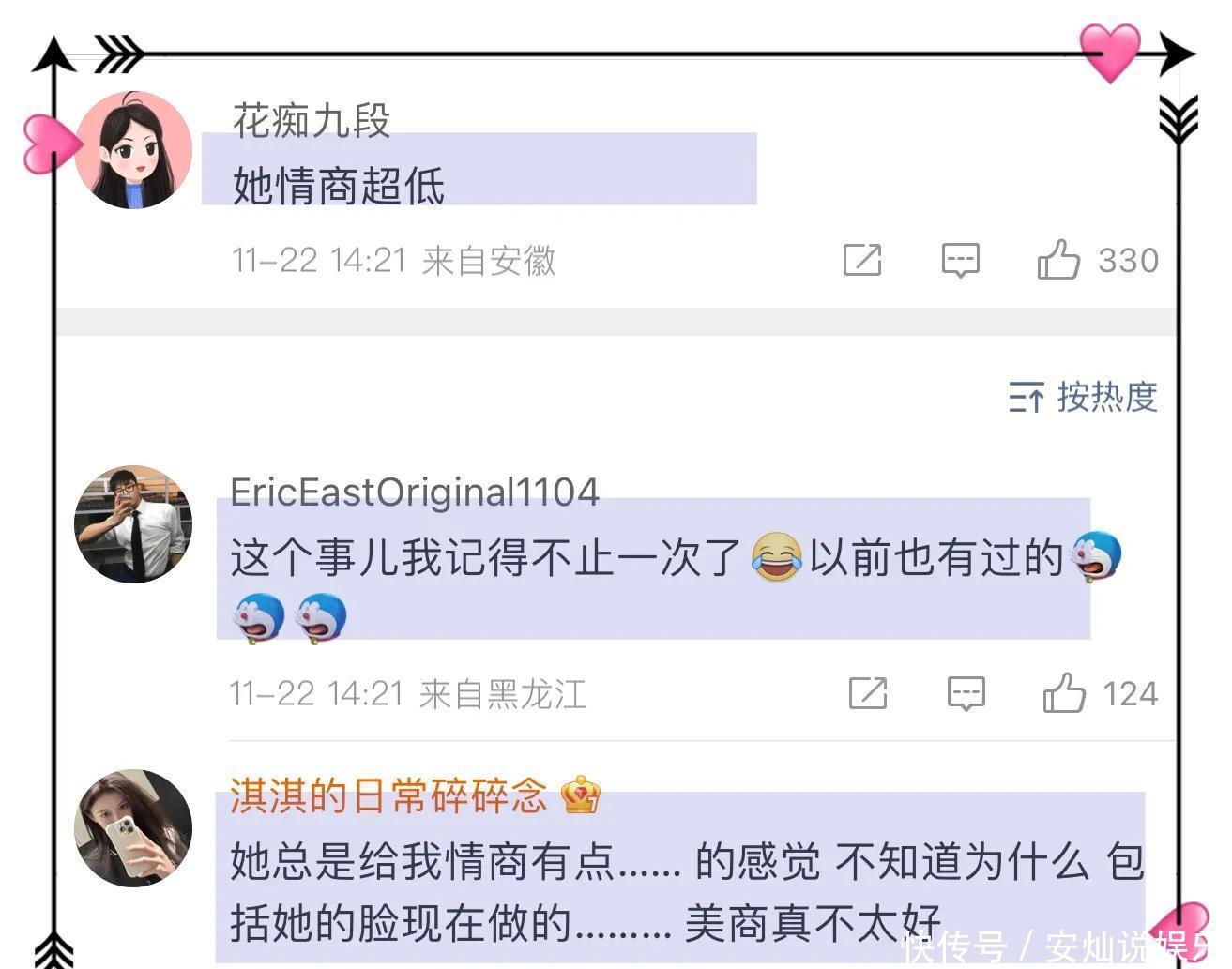 于是不少网友吐槽张歆艺,怎么哪里都有她,有网友提起当年她跟刘诗诗的热搜!称其对刘诗诗不友好!